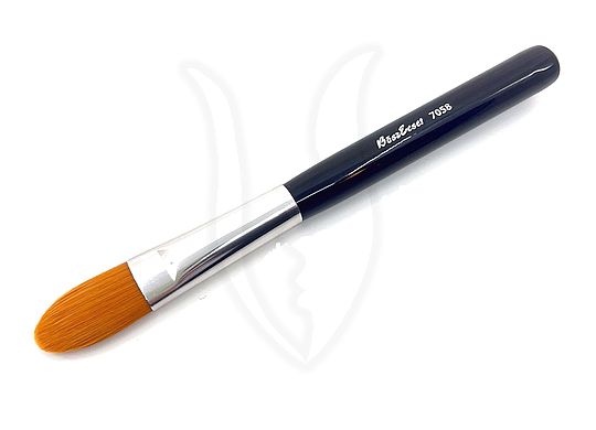 Hosszúkás, ovális fejformájú alapozó ecset, lapított keresztmetszettel. Aranysárga színű lágy szintetikus szálból készült.