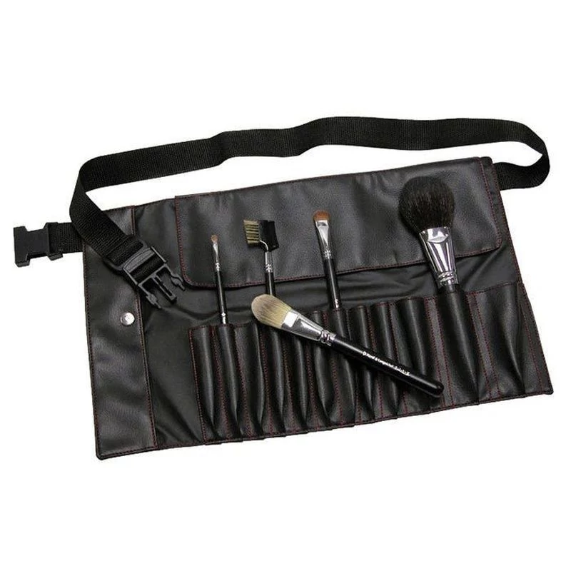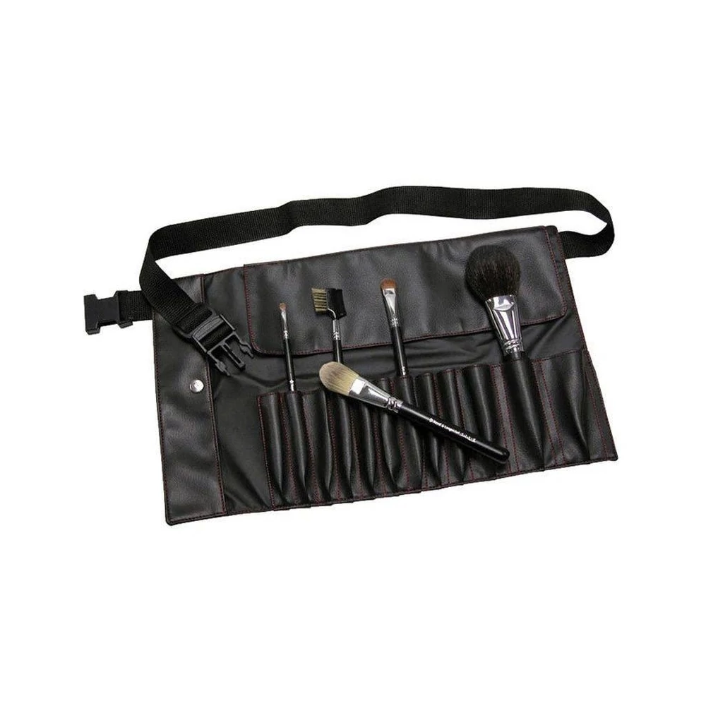 12 részes ecsettartó tok, anyaga fekete műbőr. Állítható szélességű övvel, használat közben derékra csatolható.